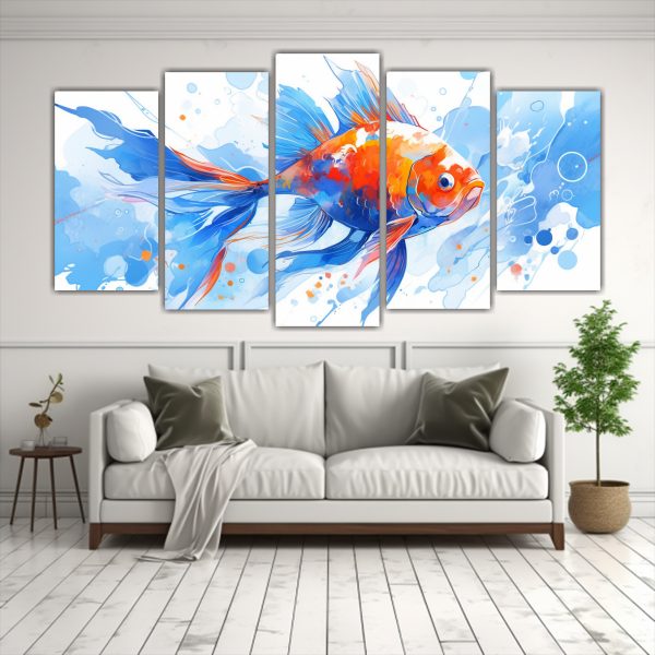 Pintura Decorativa: Goldfish Azul En Estilo Neo Pop Art.