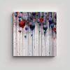 Pintura Decorativa: Hermosa Belleza Con Líneas Azules Y Gotas Rojas En Fondo Gris Translúcido