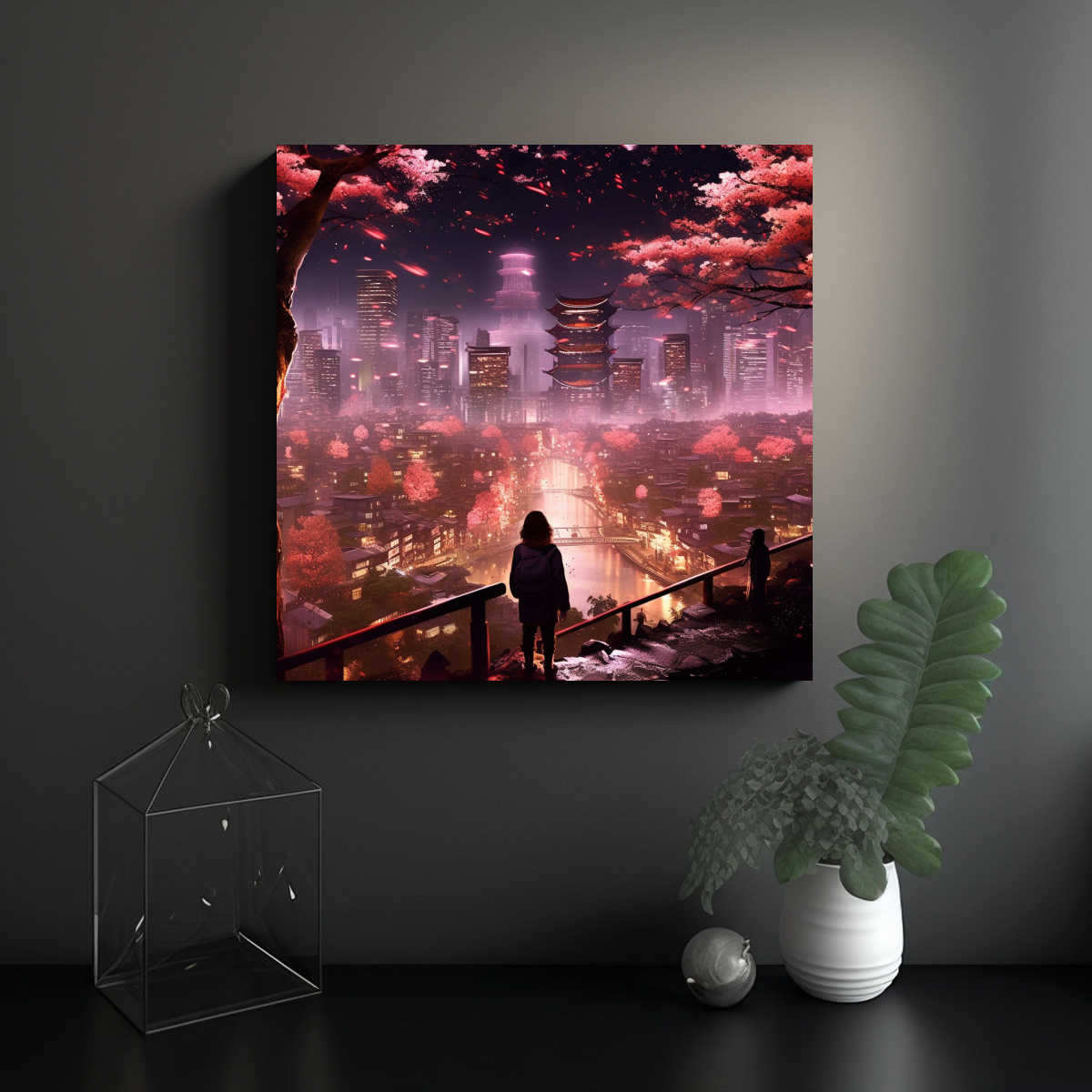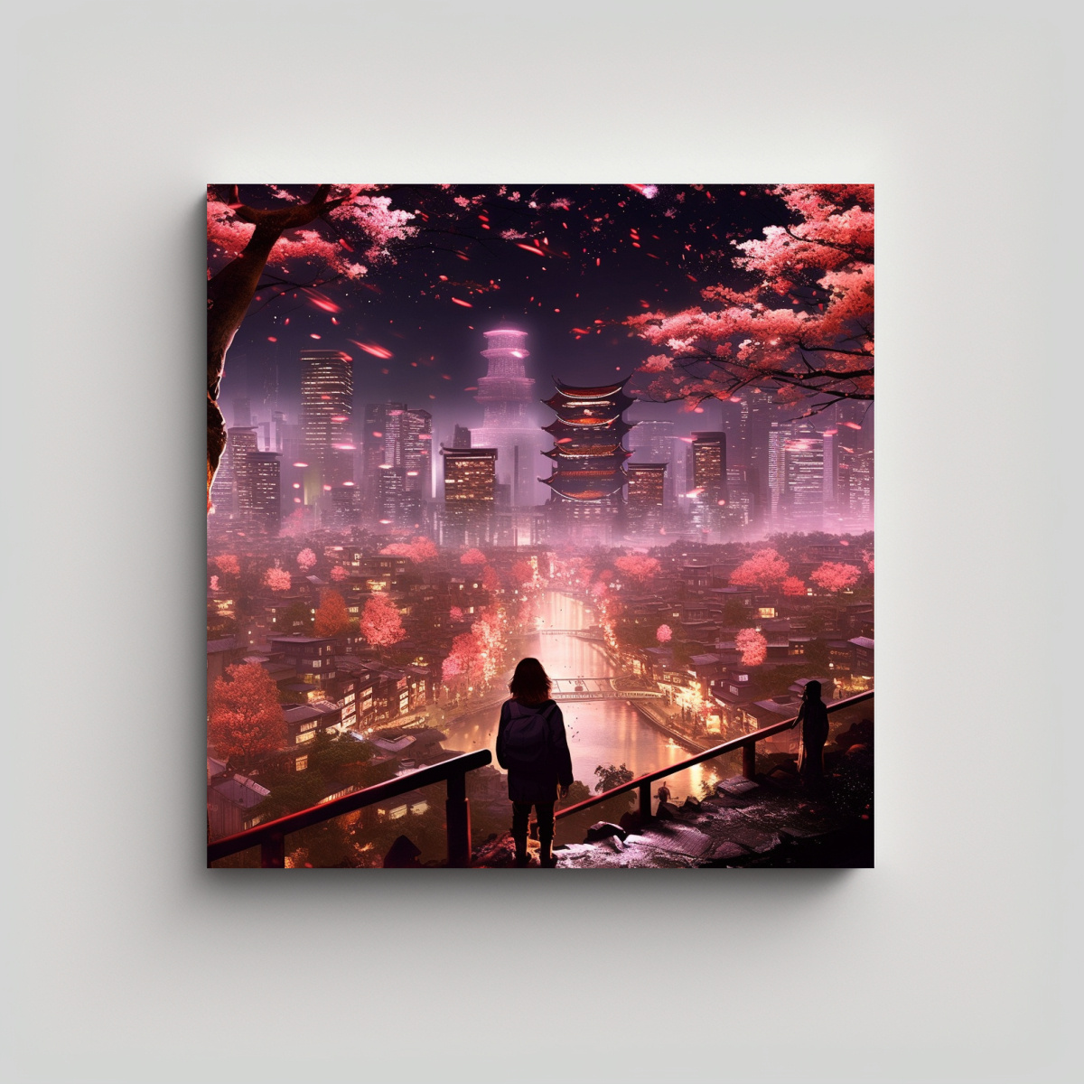 Embellece tus paredes con este diseño exclusivo que te transportará a una ciudad japonesa en la noche primaveral Envíos rápidos y gratuitos en Santiago, ¡no te quedes sin el tuyo!