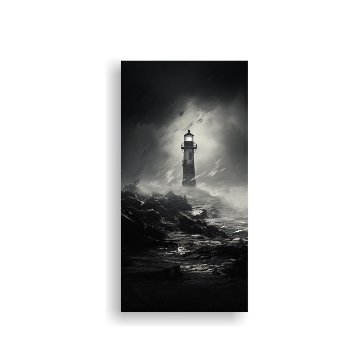 DecoCuadros presenta el cuadro ‘Soledad resonante de un viejo faro en un paisaje luminoso’, con una combinación de colores plateado, negro, gris y azul marino grisáceo Diseño exclusivo de nuestra tienda Añade un toque de elegancia y misterio a tu espacio con este cuadro de alta calidad Entregas rápidas y gratis en Santiago
