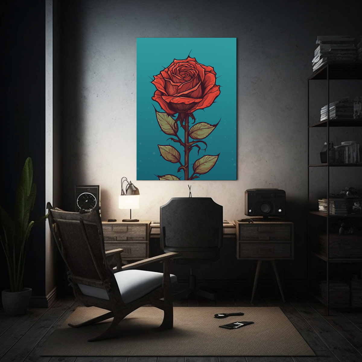 Pintura Decorativa Lienzo Diseño Rosa Roja Detallada Arte Imagen Culturar