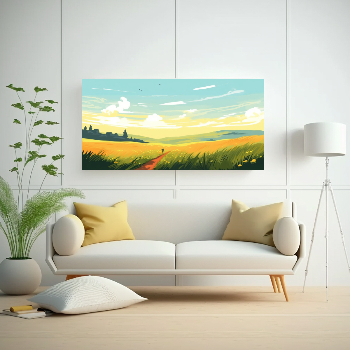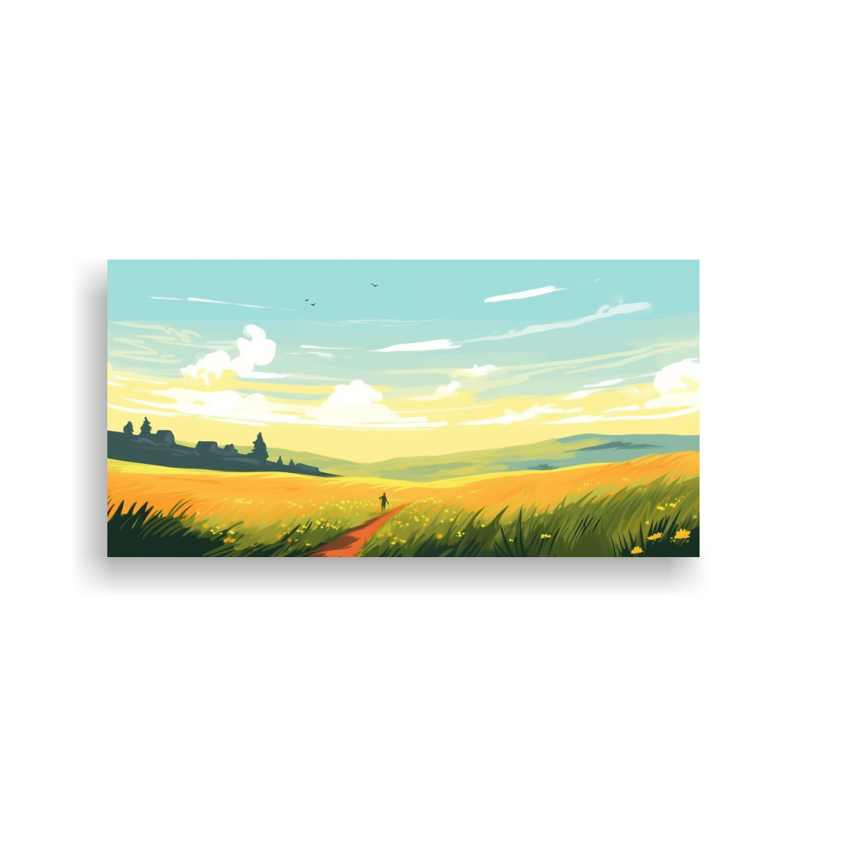 Pintura Decorativa Lienzo Tela Campo Anaranjado Tarde Amarillo.