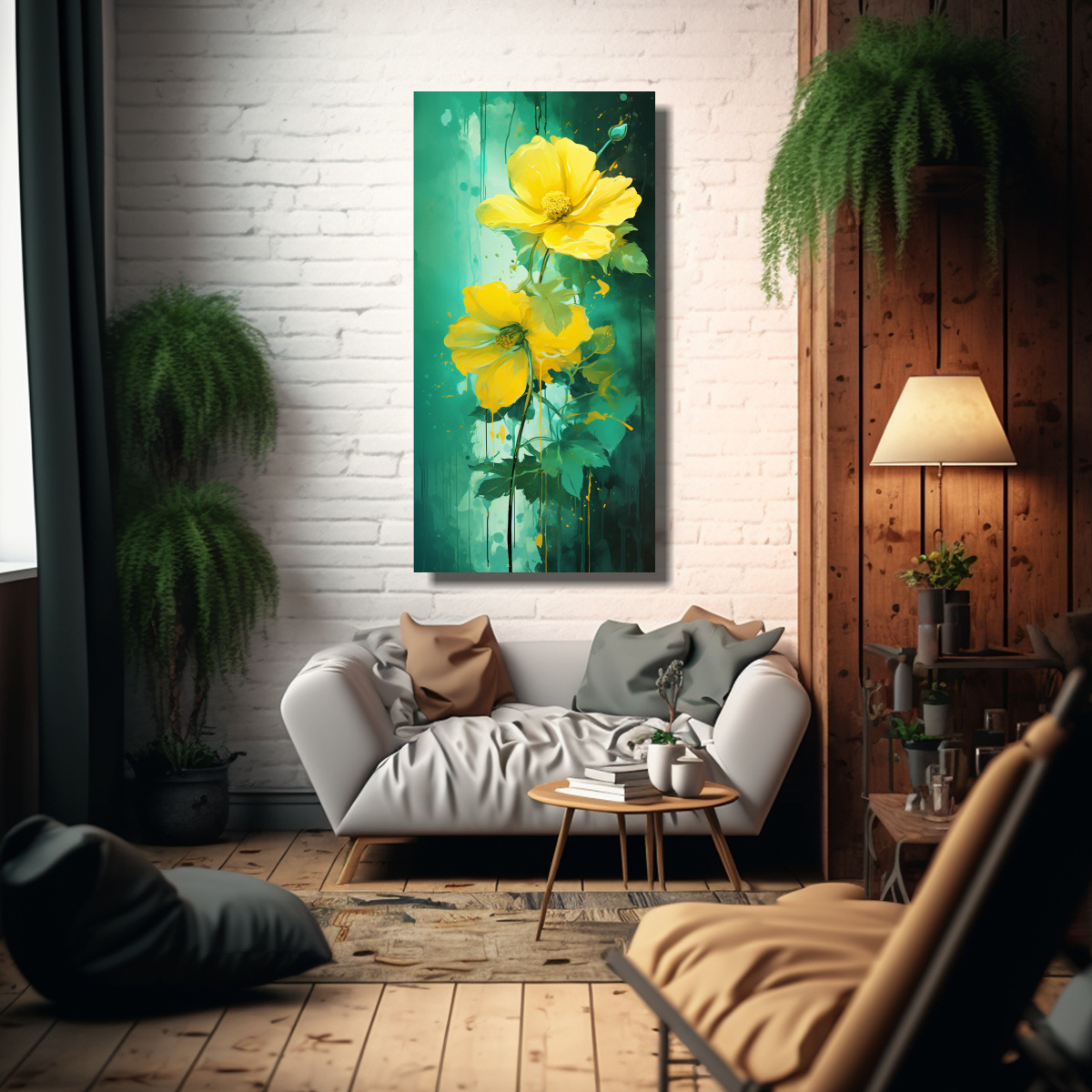 Pintura Decorativa Lienzo Tonos Regalo Amarillo Y Verde Estilo Neonoir.