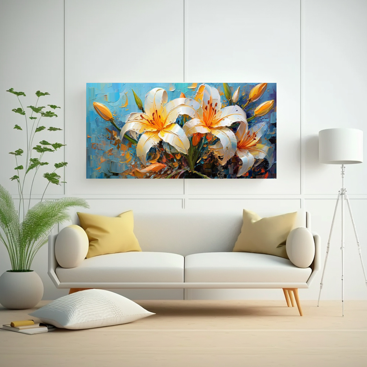 Pintura Decorativa Lirio Colorido Con Pigmento Amarillo En Lienzo