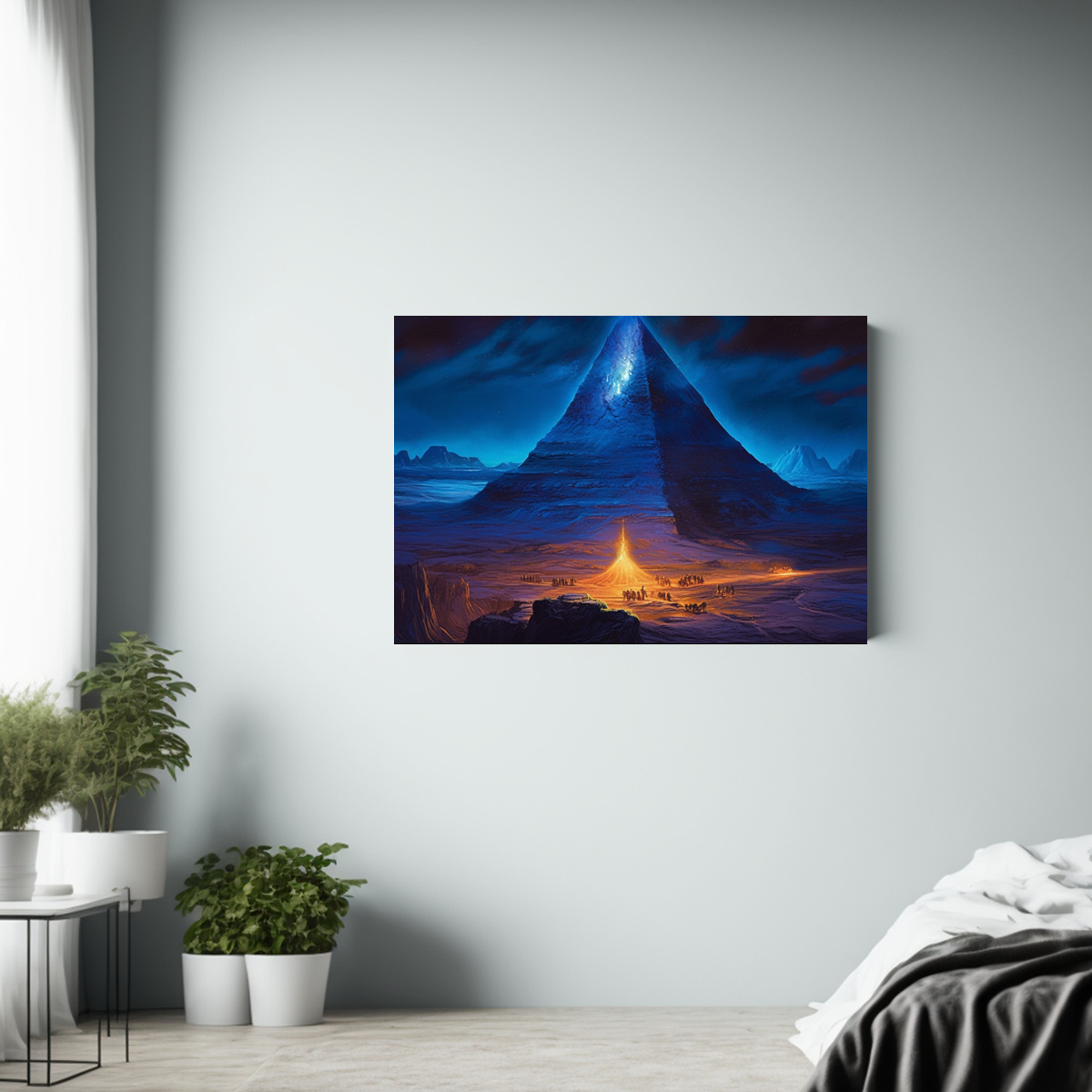 Pintura Decorativa: Llama Azul Sobre Montaña, Cuadro Impactante