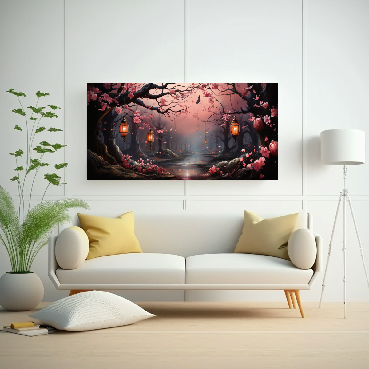 DecoCuadros te ofrece diseños exclusivos de cuadros decorativos que son perfectos para cualquier espacio Nuestro cuadro minimalista de un bosque mágico con sobres rosados es ideal para agregar un toque de magia y encanto a tu hogar Con la mejor calidad del mercado y precios económicos, no encontrarás una opción mejor Además, ofrecemos entregas rápidas y gratuitas en Santiago, y envíos express a regiones ¿Qué esperas para disfrutar de la belleza de este cuadro en tu propia casa?