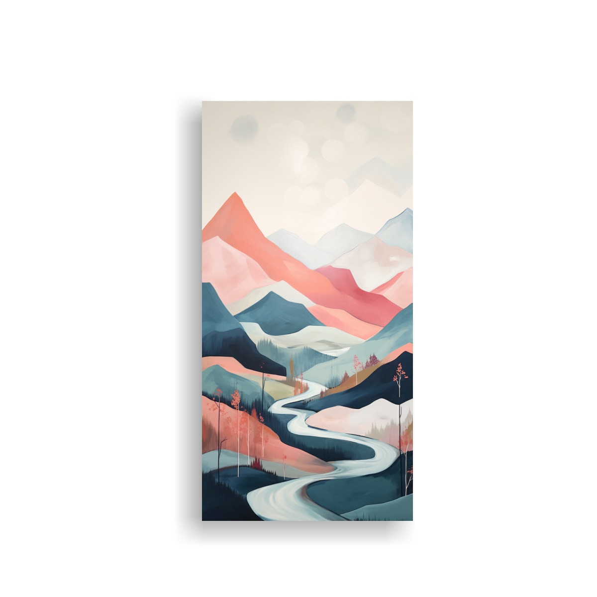 DecoCuadros ofrece cuadros decorativos de la mejor calidad y a precios económicos Nuestro cuadro abstracto ‘Pintura decorativa moderna del dormitorio con interpretación abstracta de un paisaje montañoso sereno’ combina los colores Azul Marino grisaceo, Beige, Gris, Coral, Plateado, Rosado Claro y Turquesa, y está diseñado exclusivamente por nuestra tienda Impresos en tela de alta calidad con bastidores de madera, estos cuadros agregan un toque moderno y elegante a cualquier habitación Además, contamos con las entregas más rápidas y gratuitas en Santiago, y envíos express a regiones