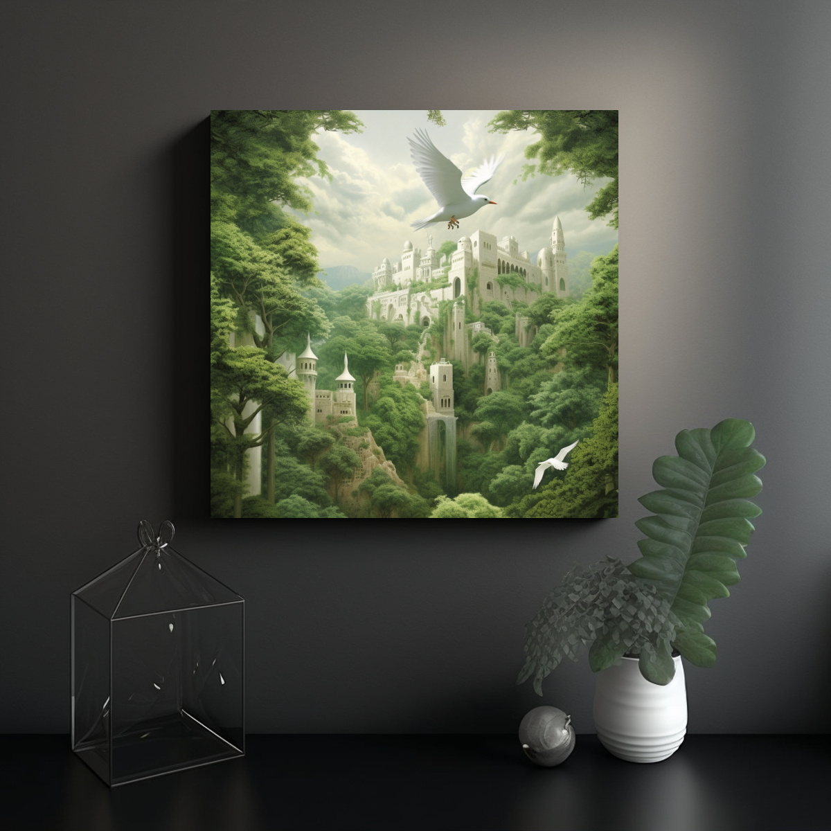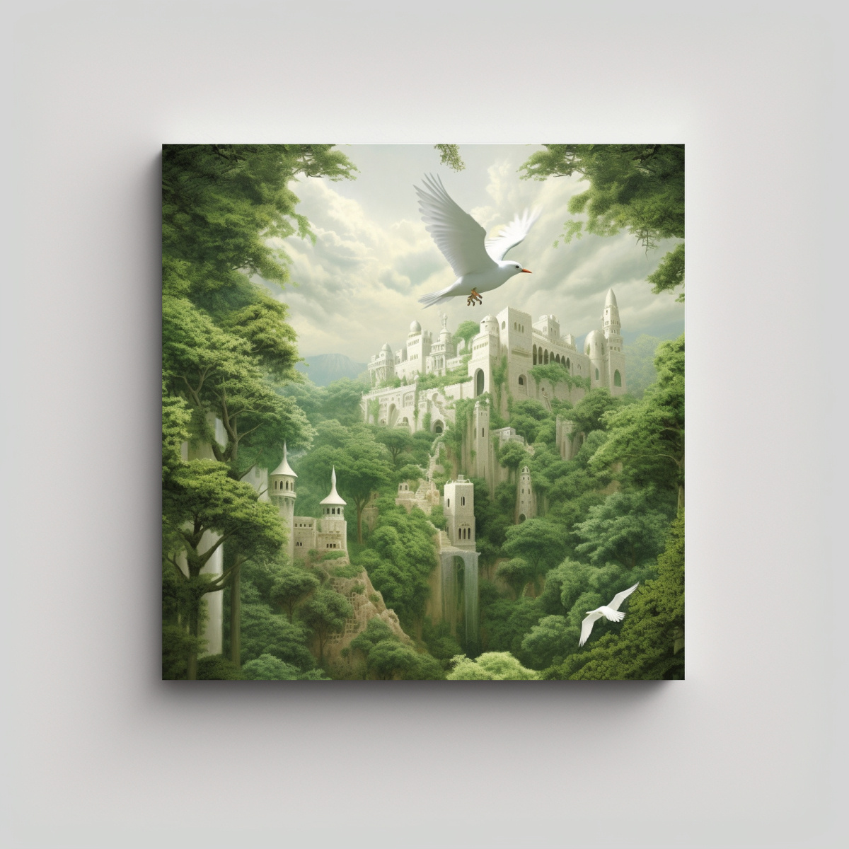 Pintura Decorativa Paisaje Con Paloma Blanca En Alhambra.
