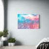 Este cuadro paisaje invernal con nieve y cielo azul se vería ideal en el salón principal, sobre un sofá gris claro, creando un contraste elegante y resaltando los tonos turquesa y lila ¡Dale vida a tu sala de estar con esta pieza única!