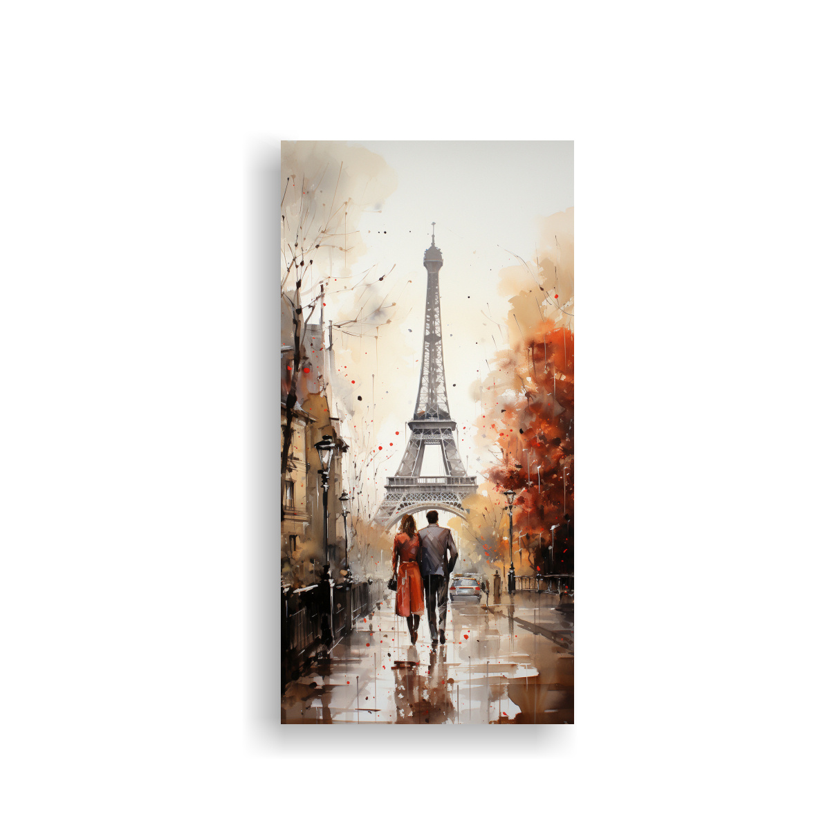 Pintura Decorativa Pareja Joven Caminando Frente A La Torre Eiffel