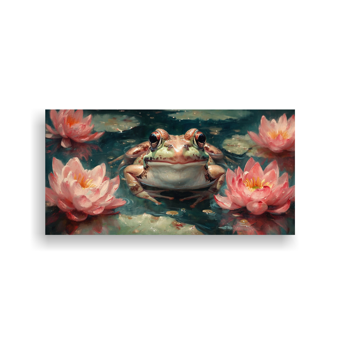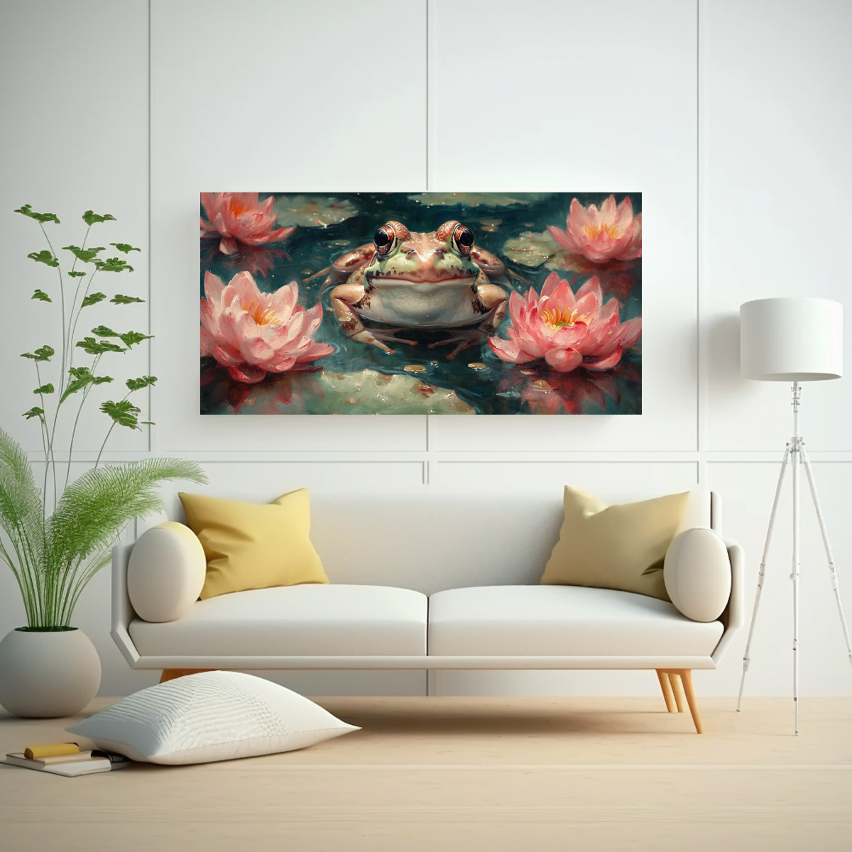 Pintura Decorativa: Rana En Estanque De Flores De Loto.