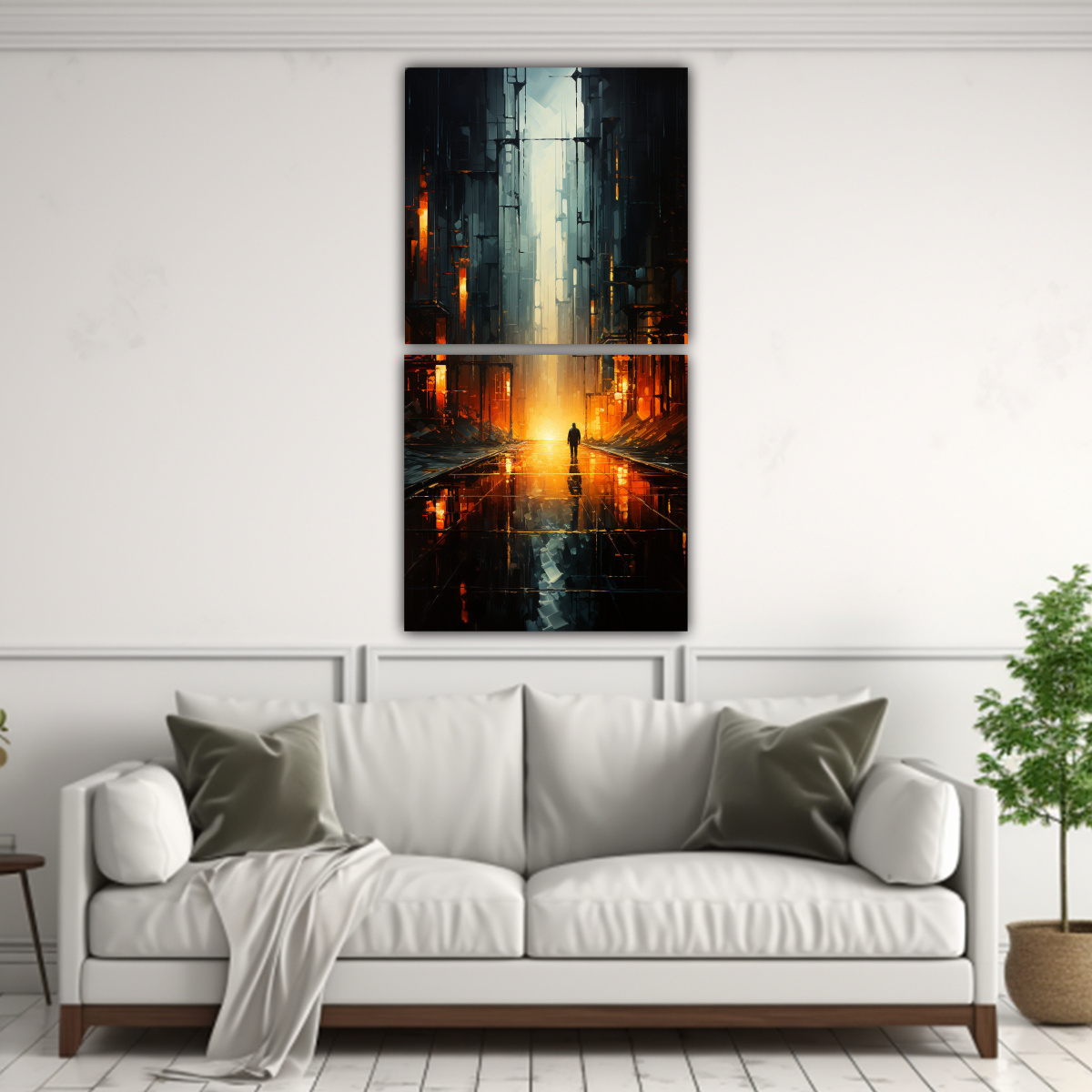 Pintura Decorativa Rectangular Abstracta Inspiradora Con Toque Futurista De La Ciudad