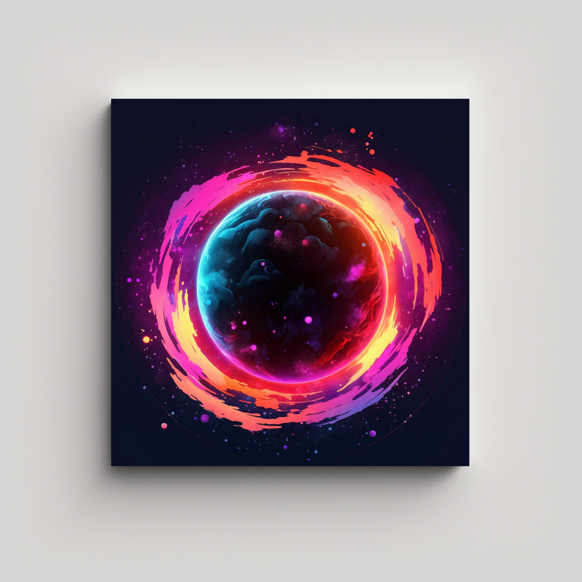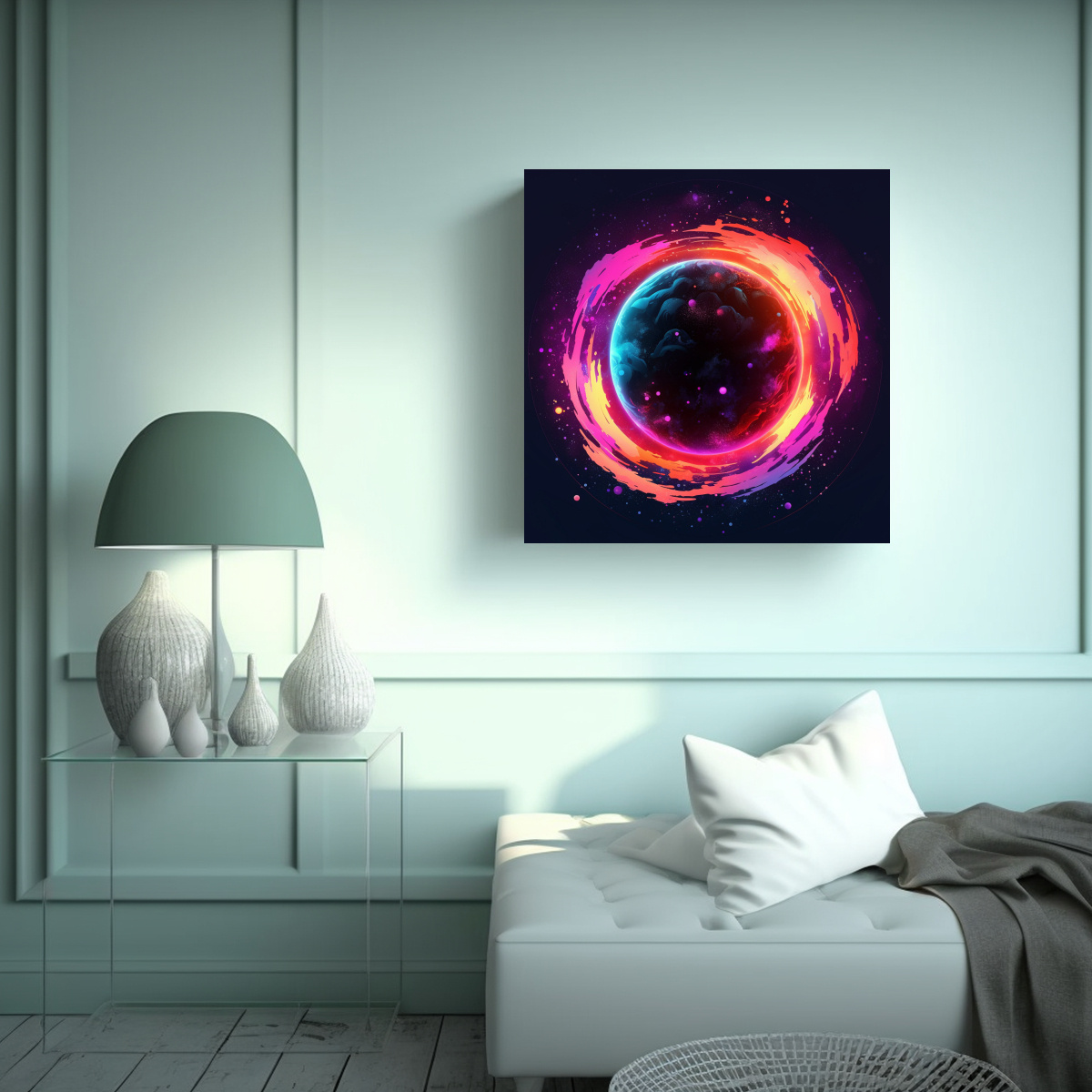 Pintura Decorativa Rectangular Con Diseño Moderno De Un Hermoso Planeta De Neón Con Estrellas En El Espacio