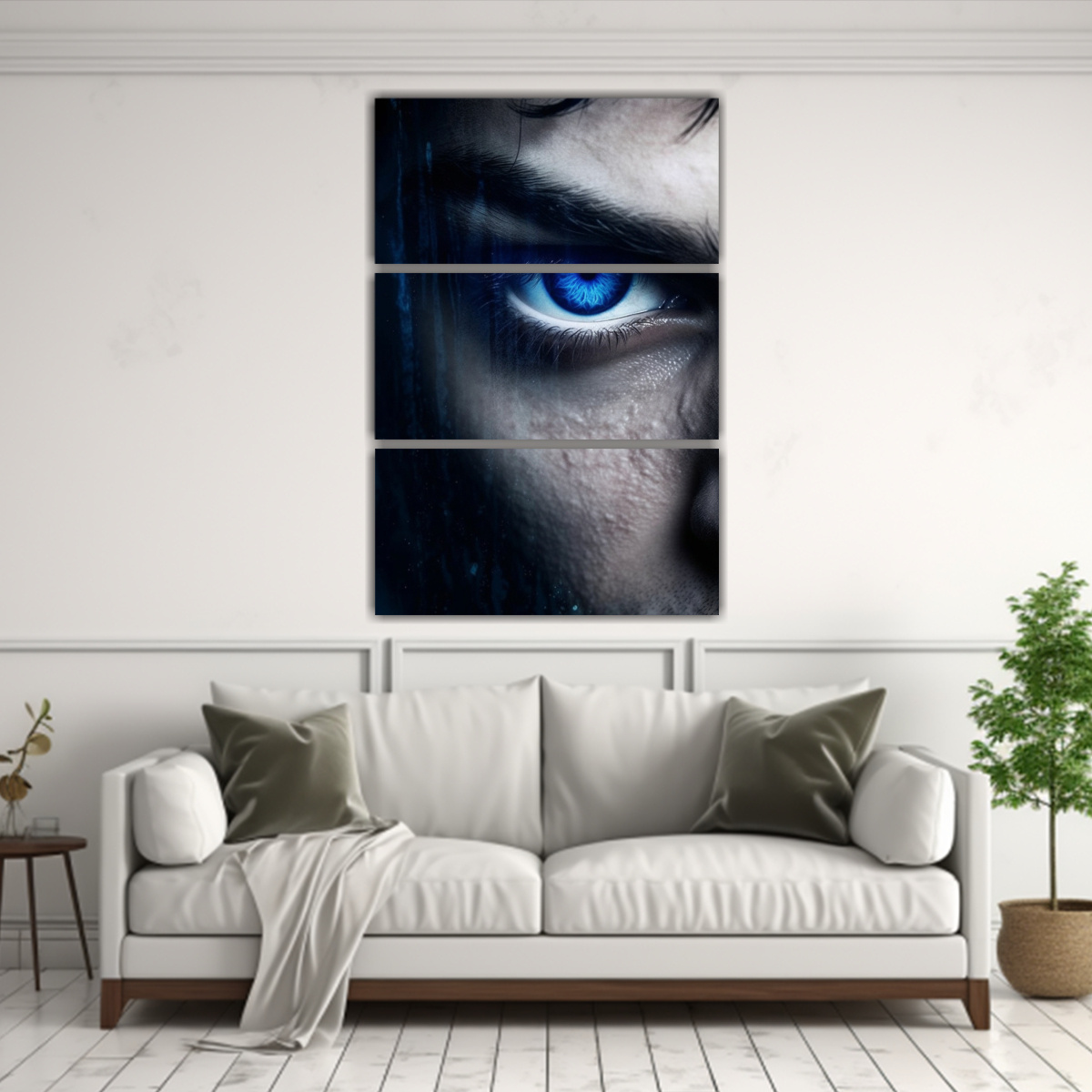 Este cuadro decorativo relieve con ojos azules tristes y malvados es perfecto para dar un toque misterioso y moderno a tu sala de estar Combínalo con muebles en tonos neutros como blanco, gris o negro para resaltar su impactante diseño Colócalo sobre un sofá o en una pared libre para crear un punto focal y dejar a todos tus invitados sorprendidos