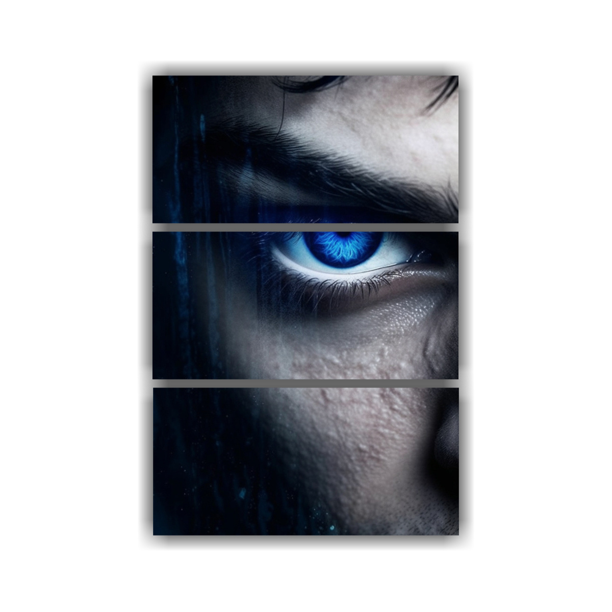DecoCuadros tiene el mejor cuadro decorativo relieve con ojos azules tristes y malvados en colores plateado, negro, gris, azul marino grisaceo y verde azulado Compra ahora y disfruta de nuestros diseños exclusivos, calidad y precios económicos