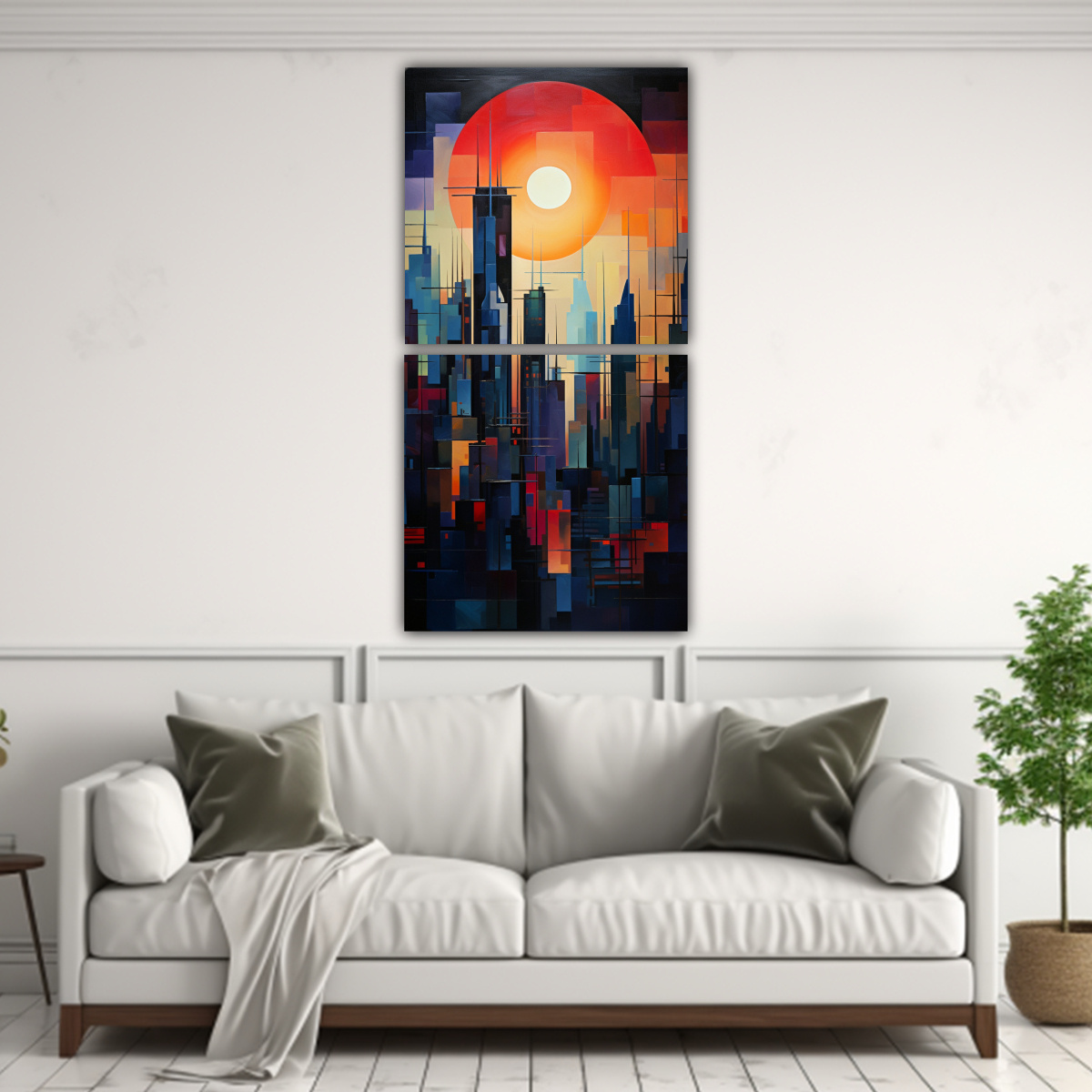 Pintura Decorativa Representación Abstracta Dinámica De Una Ciudad Ocupada