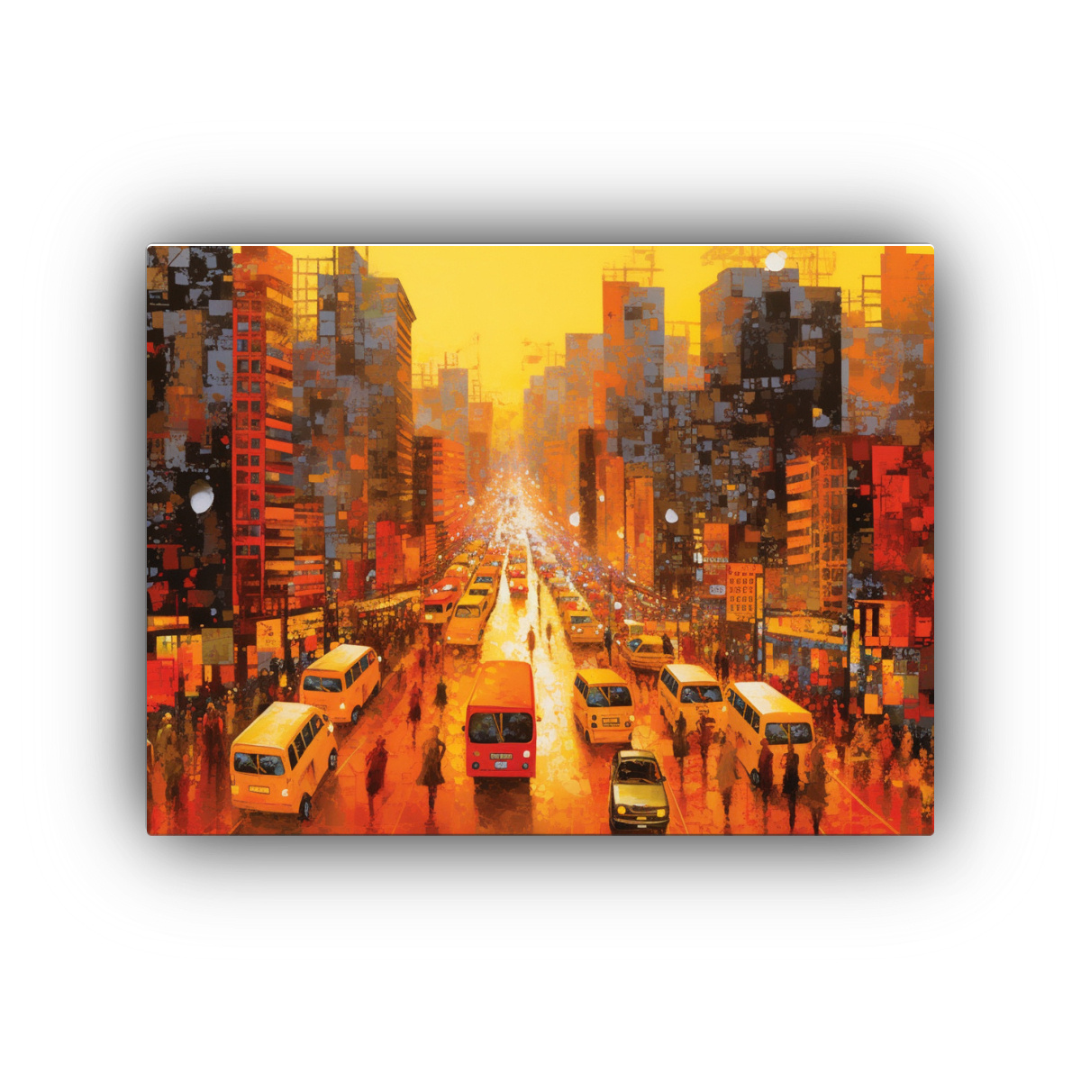 Confeccionado en tela de alta calidad y montado en bastidores de madera, este cuadro ofrece un efecto visual único que transformará tu espacio Disfruta de envíos rápidos y gratuitos en Santiago, además de envíos express a regiones Renueva tu hogar con este cuadro y crea una atmósfera urbana y sofisticada