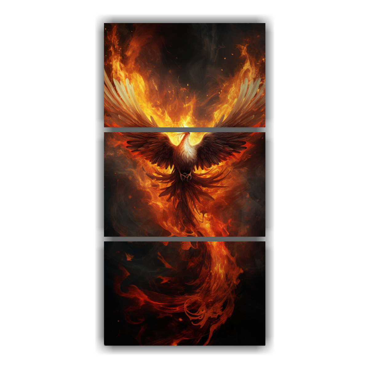 DecoCuadros ofrece cuadros decorativos impresos en tela de alta calidad con bastidores de madera El cuadro Tríptico Fotografía Perspectiva El baile ardiente del fénix renaciendo de las cenizas es exclusivo de nuestra tienda Disfruta de envío gratis en Santiago y envíos rápidos a regiones