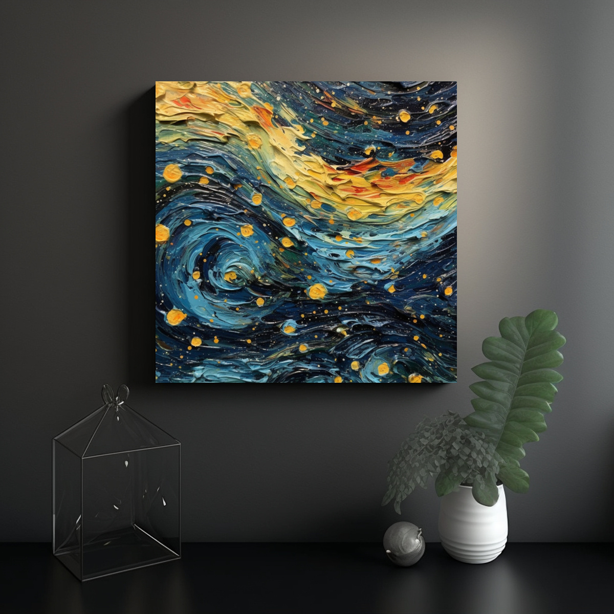 Renueva tu ambiente con la composición espectacular del cuadro zoomed out high detailed painting of starry night by vang Descubre diseños exclusivos, entrega rápida y gratuita en Santiago ¡Haz tu pedido ahora!