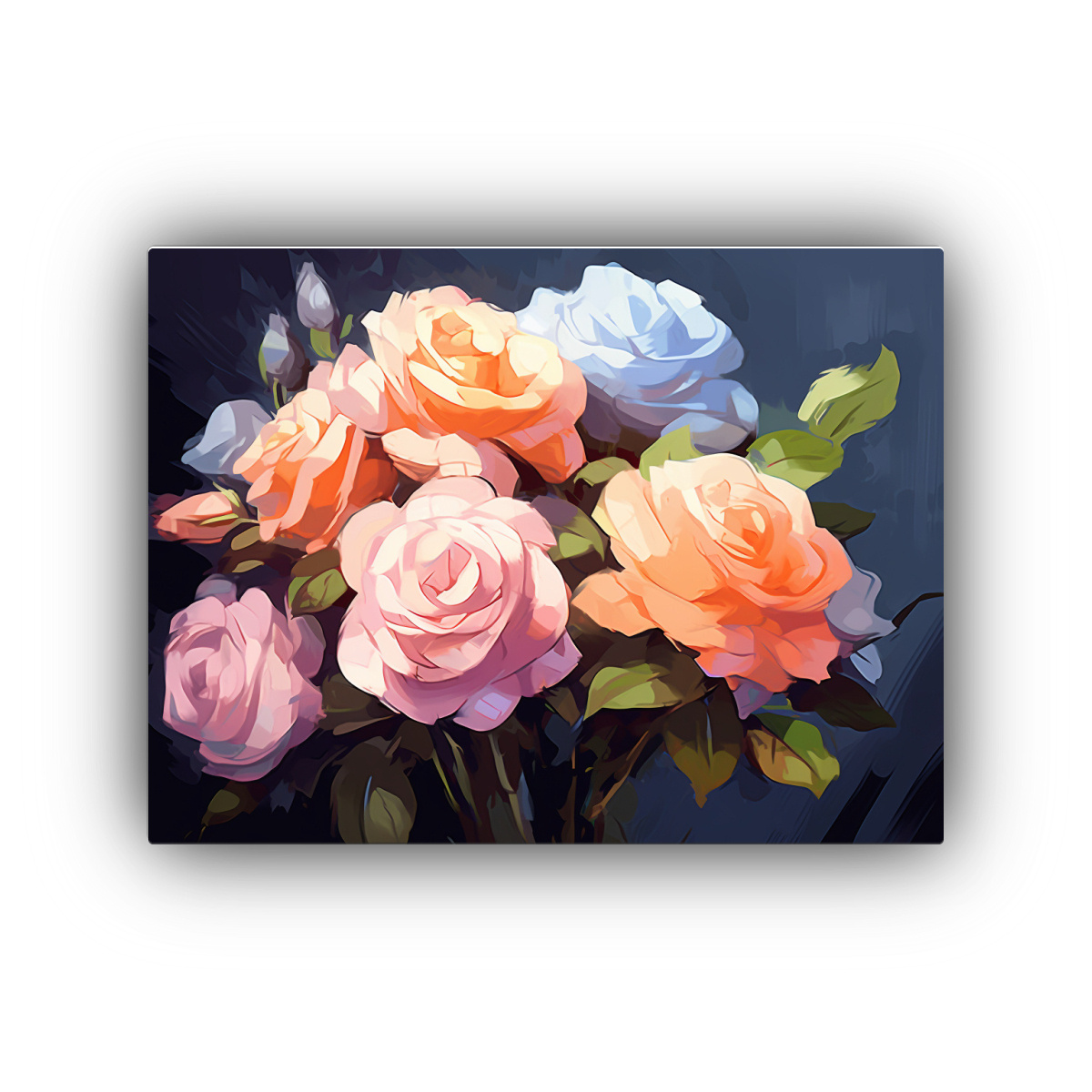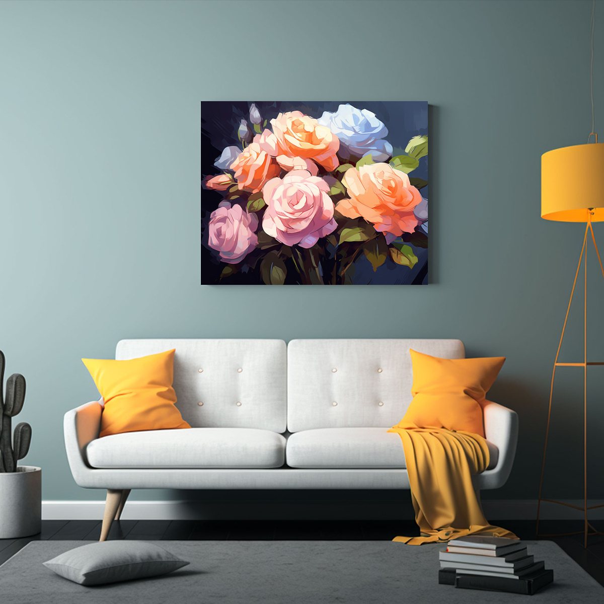 Nuestros cuadros decorativos de pintura digital de ramo de rosas en contraste son ideales para dar un toque especial a cualquier espacio Con diseños exclusivos de nuestra tienda, ofrecemos las entregas más rápidas y gratuitas en Santiago, y envíos a regiones express Cada cuadro está montado alrededor de un marco de madera de pino de alta calidad, lo que garantiza su durabilidad Además, nuestras imágenes y fotos de alta definición están impresas con lienzo ecológico, cuidando el medio ambiente ¿Dónde colocar este cuadro? Recomendamos ponerlo en el salón, el dormitorio o la sala de estar para crear un ambiente acogedor y elegante