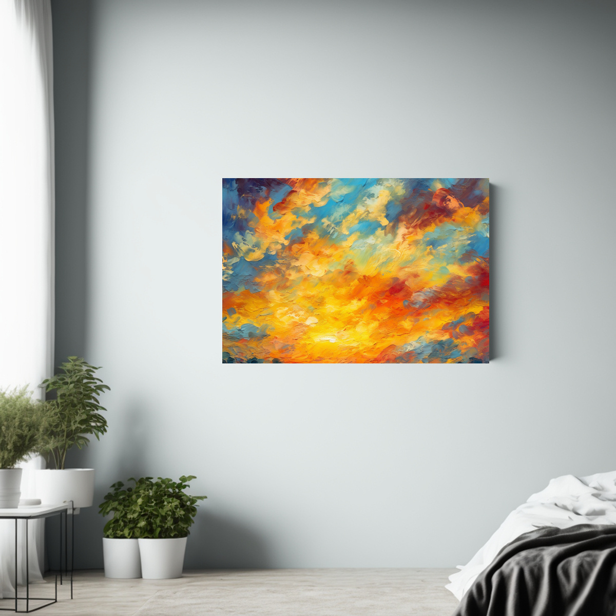 Este cuadro de la escena majestuosa del cielo quedará perfecto en tu sala de estar sobre un sofá de color neutro, aportando calma y elegancia a tu hogar Combínalo con cojines en tonos dorados y azules para resaltar su belleza