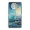 Pintura Diptico Ambiente En Teal Verde Y Plata En Acuarela