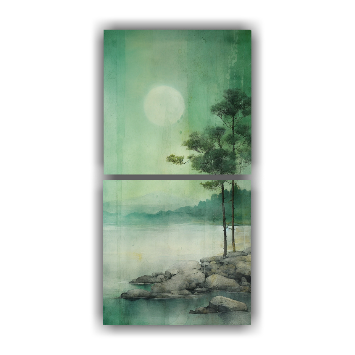 Decora tus espacios con el Diptico Ambiente en Teal Verde y Plata en Acuarela Cuadros decorativos impresos en tela de alta calidad con bastidores de madera Calidad y precios económicos en DecoCuadros