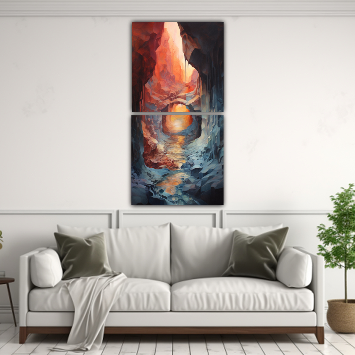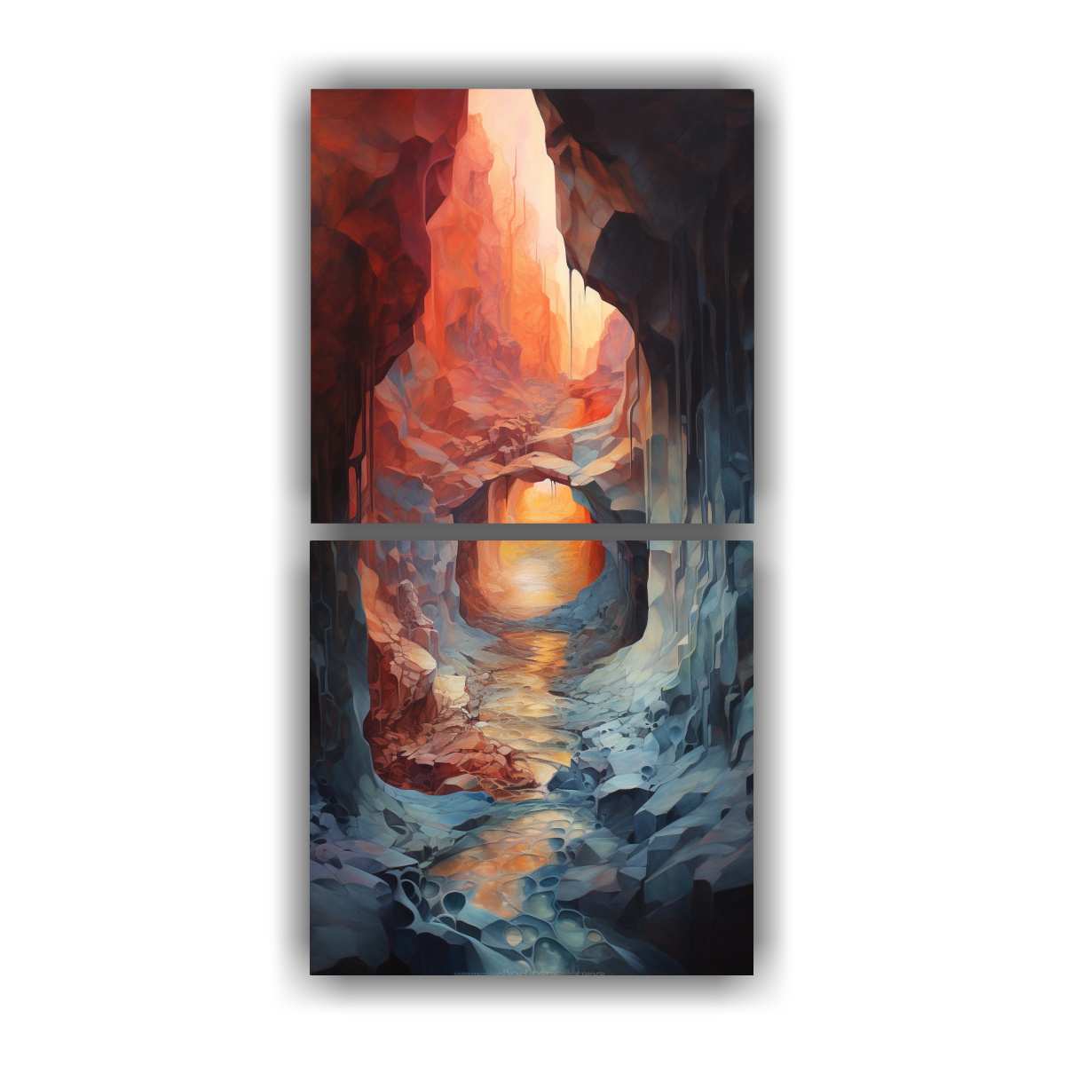 Pintura Diptico Expresión Luminosa: Paso A Través De Una Cueva Oculta Con Abstractos.