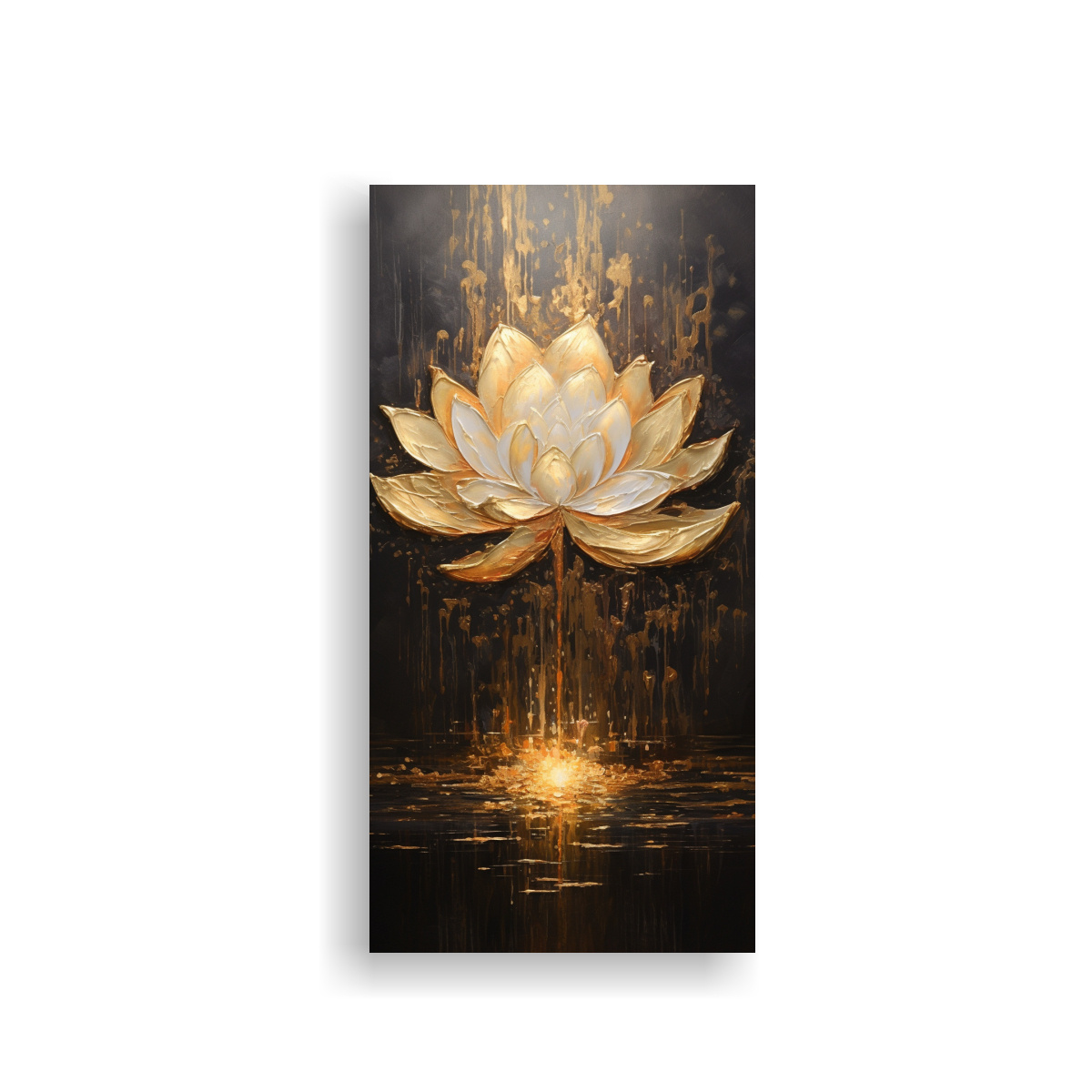 Pintura Dorada Loto Composición Movimiento Armonía Lienzo Arte