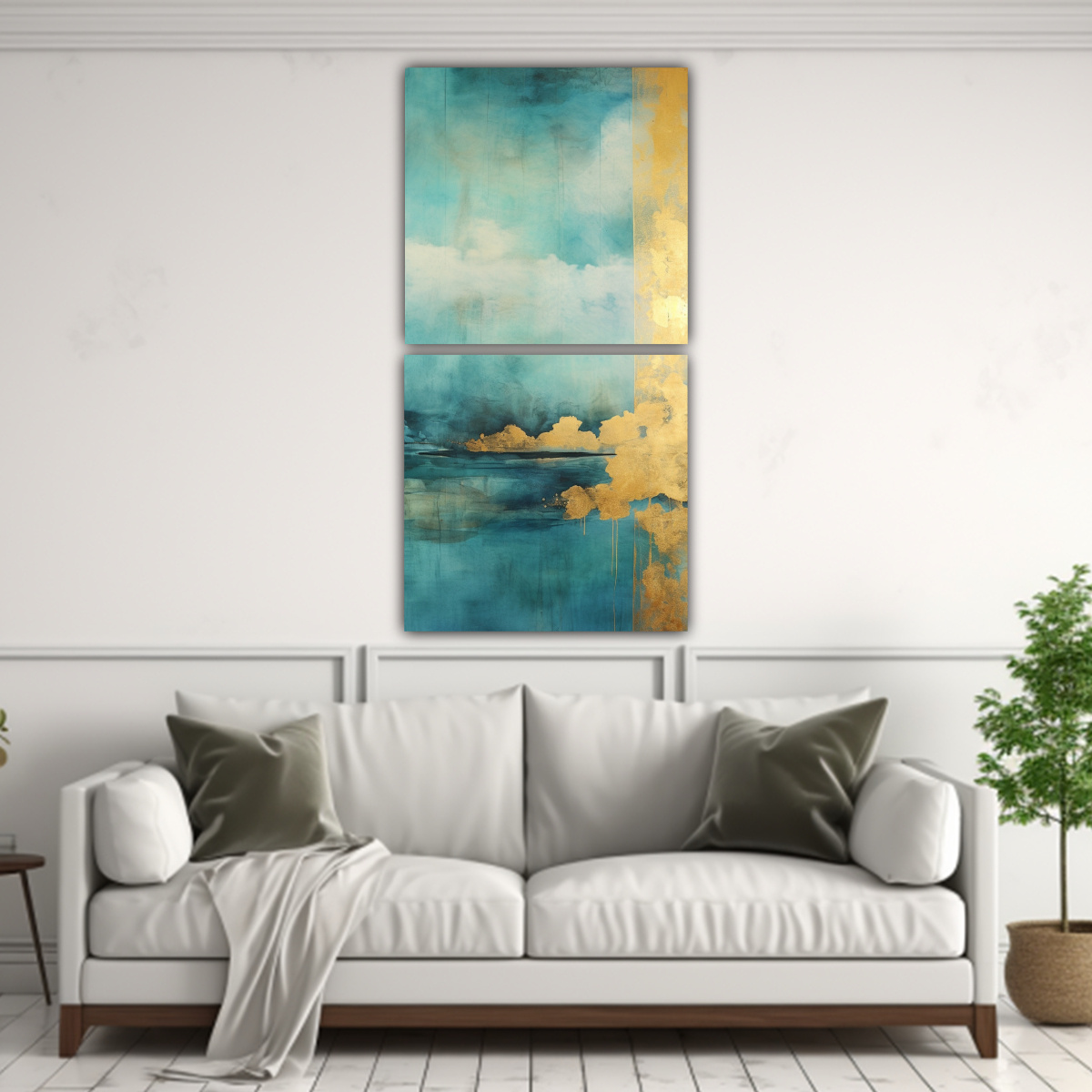 Decora tu hogar con los cuadros Pintura Dos Cuadros Inspiración Contraste en acuarela turquesa, azul y dorado Calidad premium y diseños exclusivos en DecoCuadros