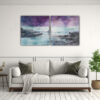 Pintura Dos Cuadros Movimiento Vida Con Acuarela Púrpura, Turquesa Y Plateado.