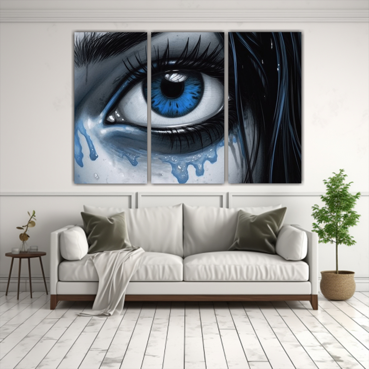 Para realzar la belleza de este cuadro económico de sirope negro y azul con ojos de niña, te recomendamos colocarlo en la sala de estar sobre un mueble de color blanco para lograr un contraste elegante y moderno ¡Dale un toque especial a tu hogar con esta pieza exclusiva de DecoCuadros!