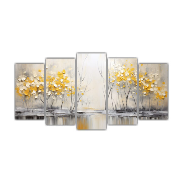 Pintura En Amarillo Y Plata Estilo Decorativo Con Motivo Políptico