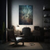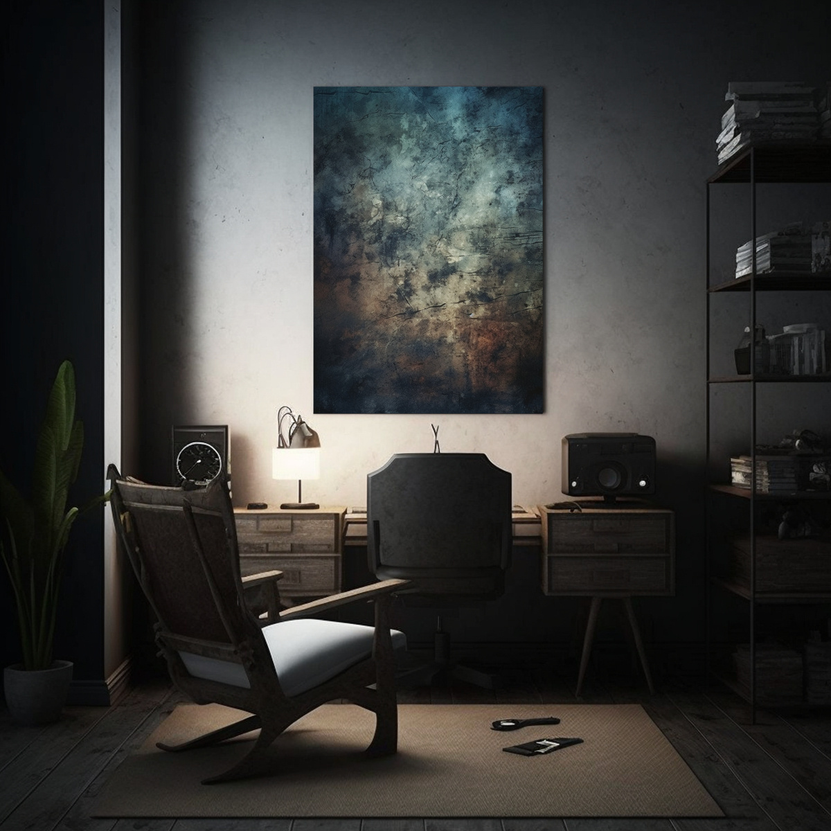 Los colores azul marino grisaceo, plateado y gris en este cuadro crean una atmósfera misteriosa y evocadora La textura inquietante añade profundidad y dramatismo a la obra, convirtiéndola en una pieza cautivadora