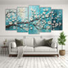 Pintura En Bastidor Acuarela, Belleza Natural, Cerezos Turquesa.