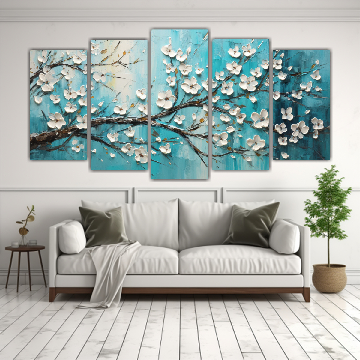 Este cuadro de ‘Pintura en bastidor acuarela, Belleza natural, cerezos turquesa’ es perfecto para decorar tu sala de estar Colócalo sobre un sofá de color blanco o beige para resaltar los tonos plateado, menta, azul marino grisáceo, turquesa, verde azulado y carmesí Combínalo con cojines en tonos similares y un tapete con un patrón floral Esta combinación de colores y elementos naturales creará un ambiente fresco y relajante en tu hogar