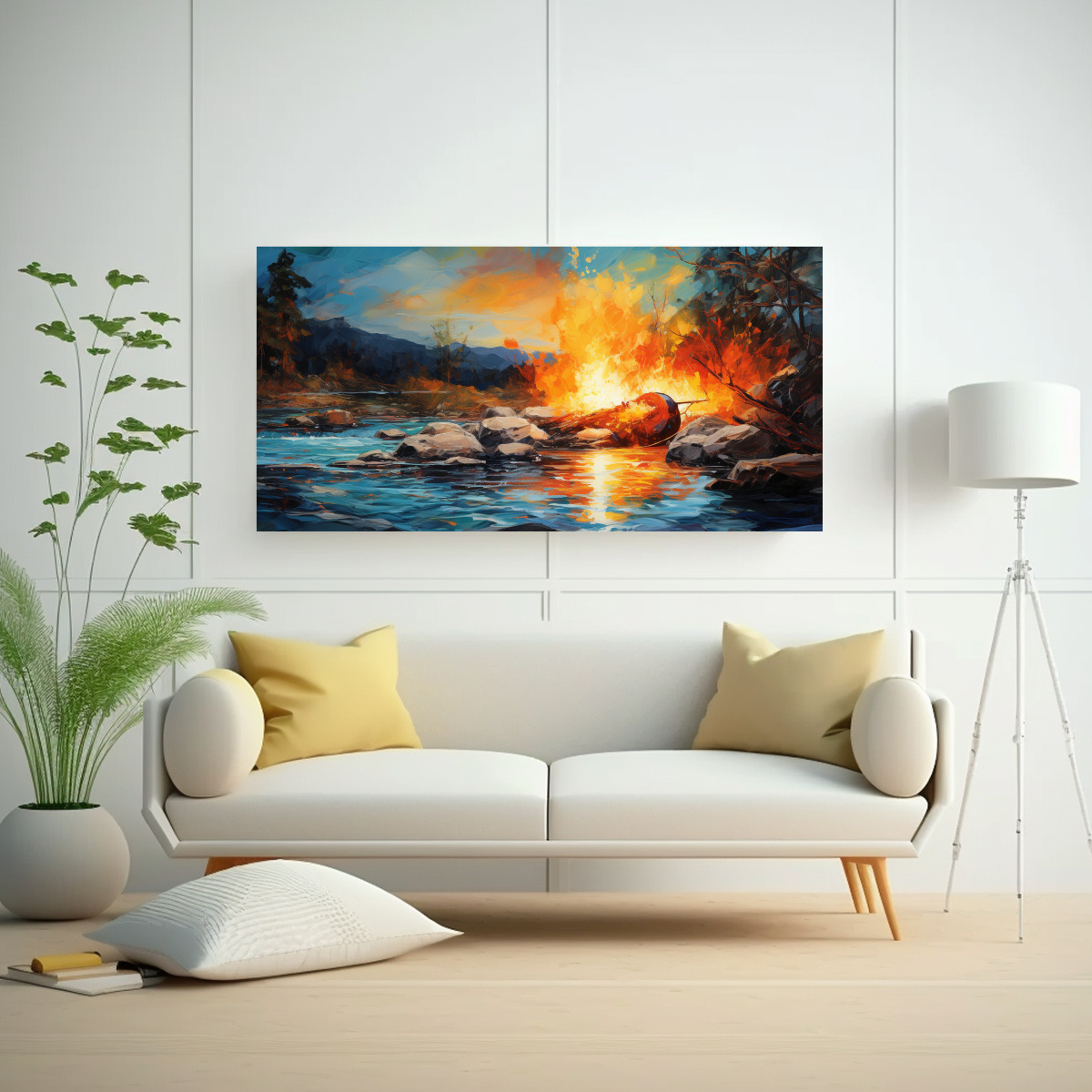 Este cuadro sería perfecto para decorar tu sala de estar, creando un punto focal impresionante en la pared principal Combínalo con muebles en tonos neutros para resaltar los colores vibrantes y lograr una atmósfera moderna y elegante