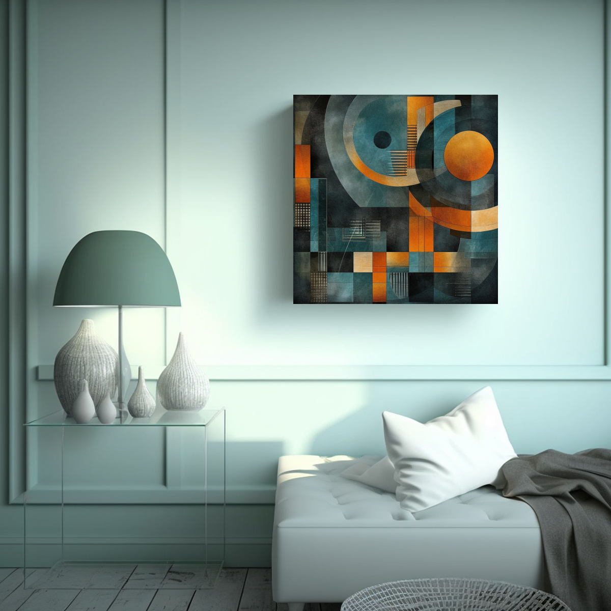 Este cuadro decorativo abstracto vintage en tonos oscuros es ideal para decorar tu sala de estar o dormitorio Combínalo con muebles de estilo minimalista en tonos neutros como blanco, gris o marrón claro para crear un contraste de colores y resaltar la belleza de la pintura Colócalo en una pared amplia y despejada, a la altura de los ojos, para que sea el centro de atención Además, puedes complementarlo con cojines o cortinas en tonos similares para lograr una armonía visual ¡Atrévete a darle un toque de sofisticación a tu hogar con este cuadro exclusivo de DecoCuadros!