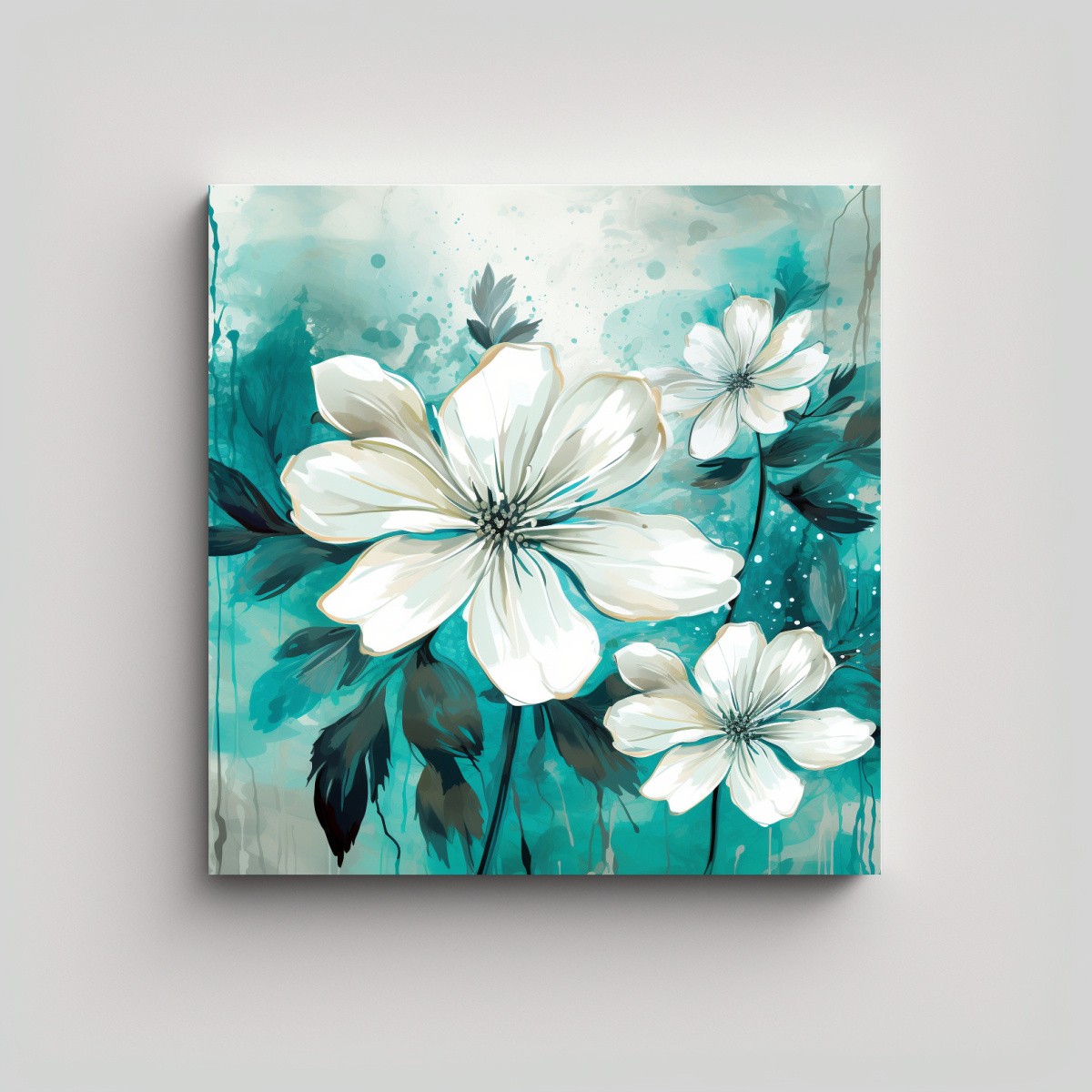 Pintura En Bastidor Creativa Reflejo Blanco Y Turquesa Ambiente Neonoir En Decoración