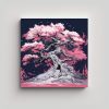 Pintura En Bastidor De Abstracción época, árbol De Enebro En Tonos Verde Y Azul, Atmósfera Neonoir.