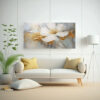 Este cuadro de flores doradas en estilo actual sería ideal para decorar una sala de estar o un dormitorio Puedes colocarlo en la pared principal, sobre un sofá o encima de una cama para crear un punto focal impresionante Combínalo con muebles y accesorios en tonos neutros para resaltar su belleza