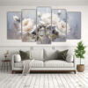 DecoCuadros tiene disponible un cuadro de rosas blancas en un estilo colorido en lienzo Los colores plateado, azul marino grisaceo, gris y beige se combinan para crear una obra de arte impresionante Nuestros cuadros están impresos en tela de alta calidad con bastidores de madera duraderos Compra ahora y obtén la mejor calidad y los precios más económicos en el mercado Además, ofrecemos entregas rápidas y gratuitas en Santiago y envíos express a regiones