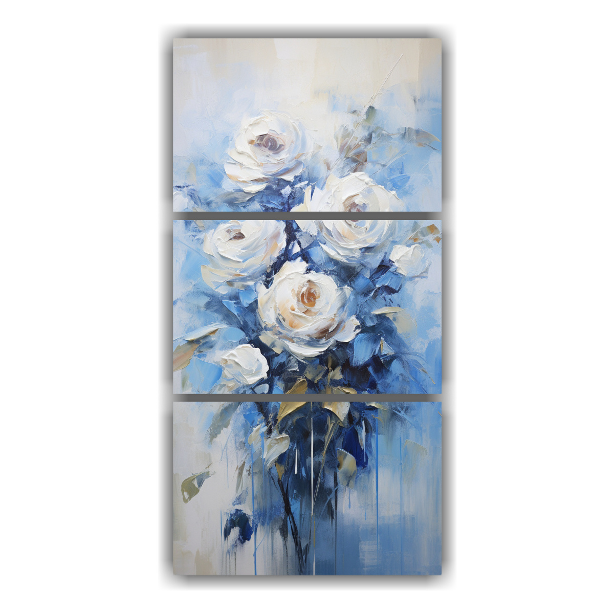 Pintura En Bastidor De Tres Telas En Conceptual Salon Estilo Rosas Azules En Lienzo