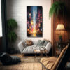 Este cuadro se vería espectacular en tu sala de estar, creando un punto focal impactante Combínalo con muebles modernos en tonos neutros como blanco o gris, y agrega cojines en los colores del cuadro para darle un toque vibrante a la decoración También puedes colocarlo en el dormitorio para darle un aire urbano y sofisticado ¡Deja que esta pintura en bastidor transforme tu espacio en un rincón lleno de vida y estilo!