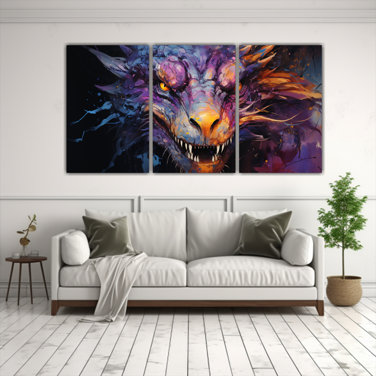 Añade un toque de misterio y elegancia con este cuadro inspirado en un dragón en tonos amarillo y púrpura Ideal para salas, oficinas o dormitorios Envíos rápidos y gratuitos en Santiago, y express a regiones