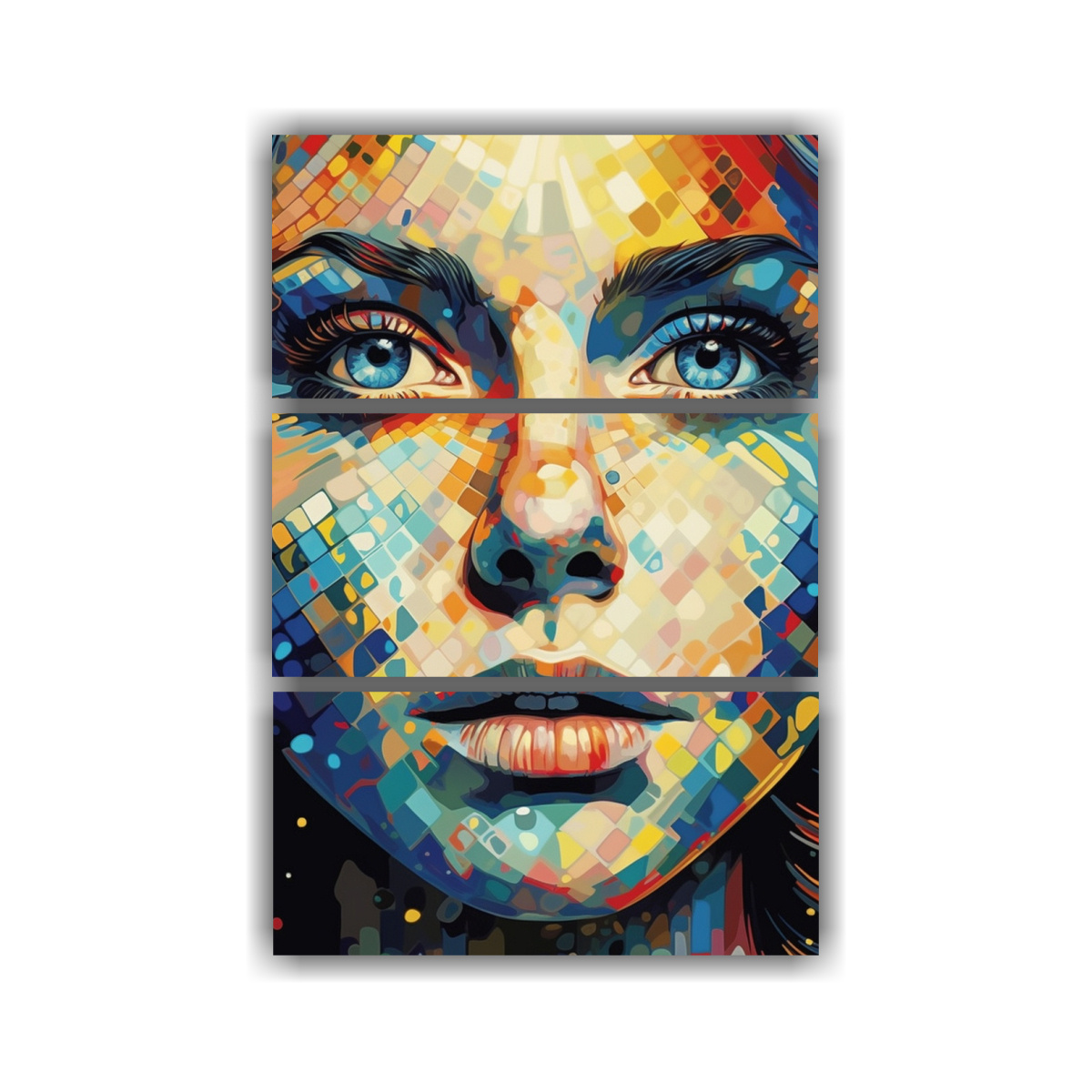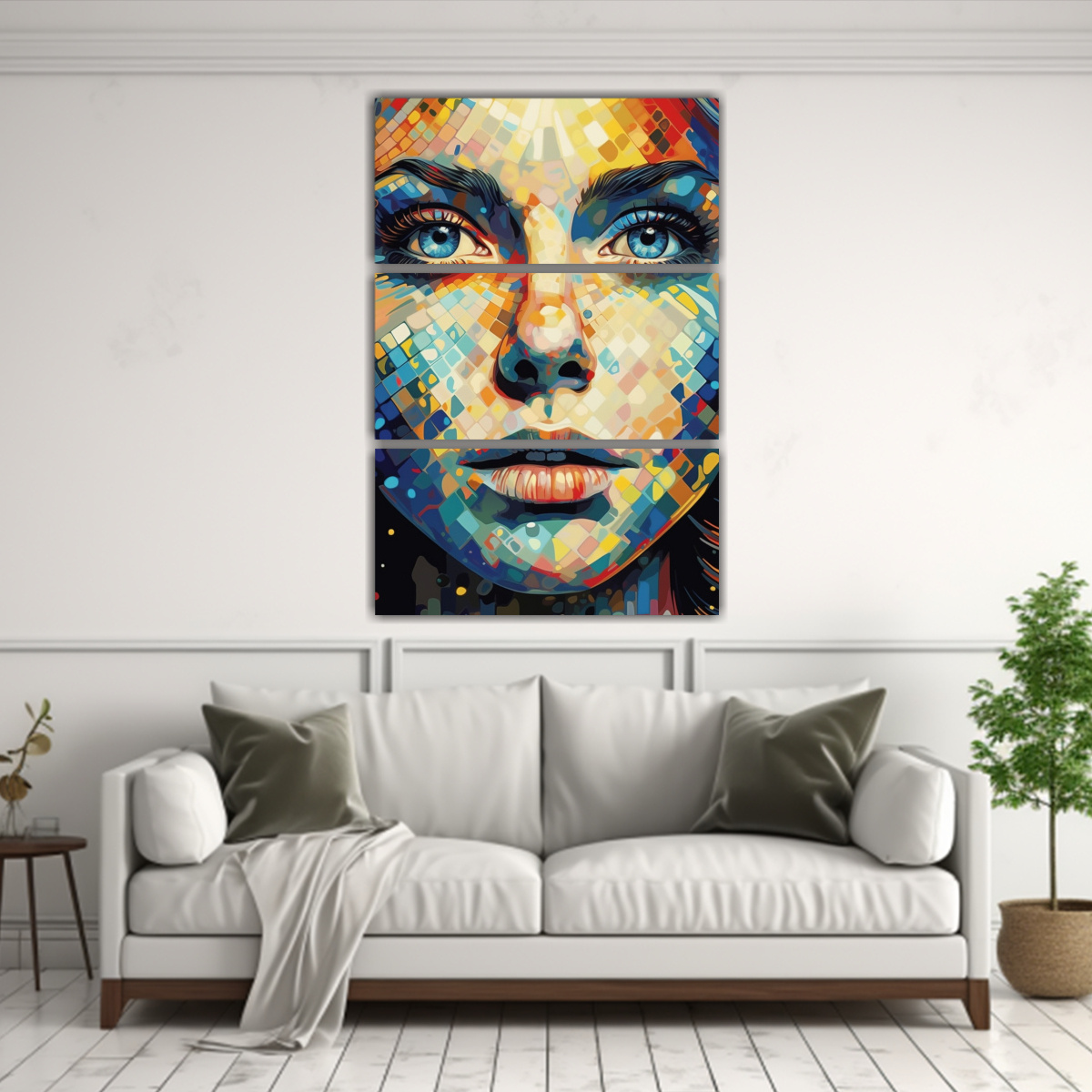 Pintura En Bastidor Estilo Galería Con Rostro De Mujer Hecho De Un Caleidoscopio De Colores