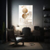 Este cuadro sería ideal para decorar una sala de estar moderna Puedes colocarlo sobre una pared de color neutro para resaltar sus detalles geométricos y combinarlo con muebles en tonos beige y plateado Agrega cojines en colores chocolate y gris para completar la decoración