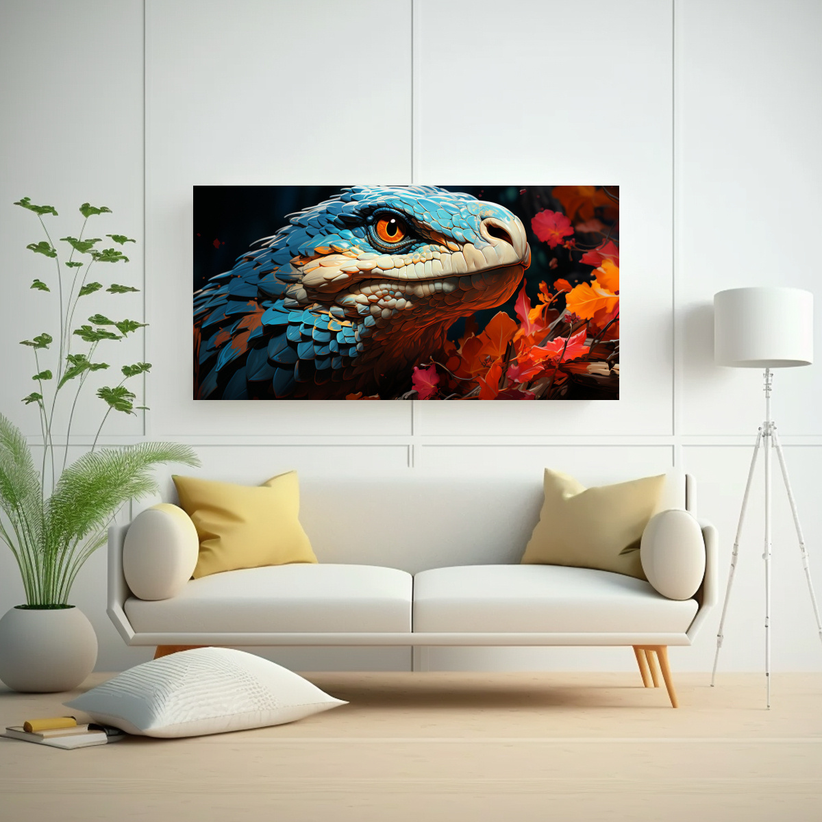 Coloca este cuadro de la serpiente de cascabel en un estilo colorido en la sala de estar para añadir un toque de arte y sofisticación Combínalo con muebles en tonos neutros para resaltar su vibrante paleta de colores y crear un ambiente moderno y elegante