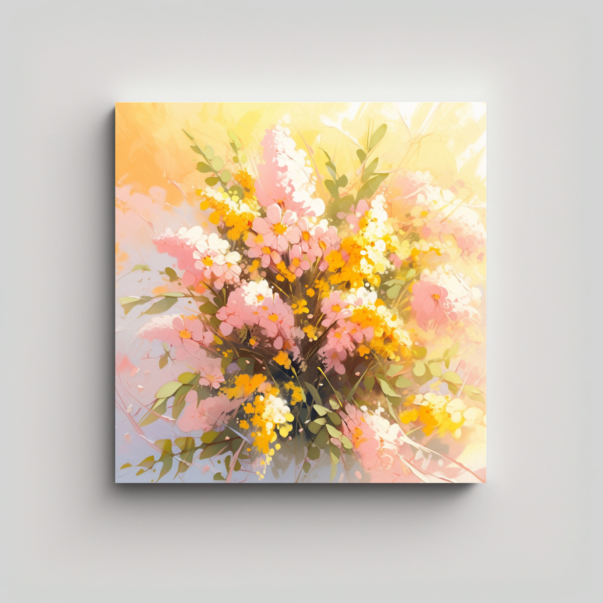 Pintura En Bastidor Floral Moderna En Amarillo Y Rosa Para Decoración