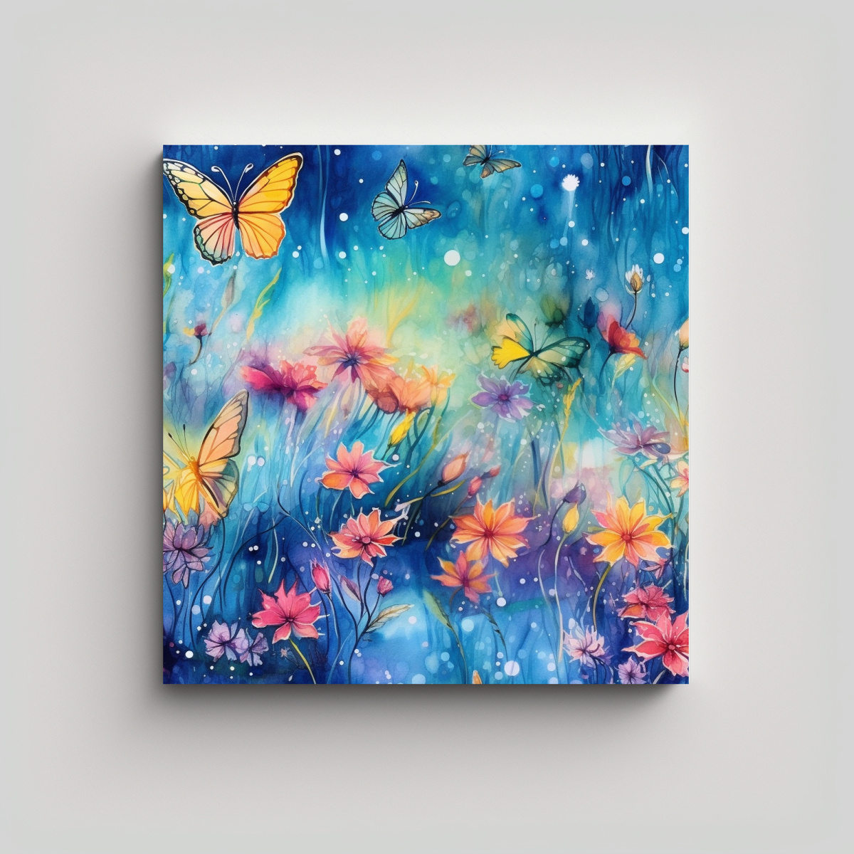 Pintura En Bastidor Impresa Mariposas Adorables Y Rocío Brillante Una Imagen Delicada
